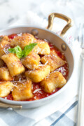Feeling inspired by the Manager's Favorite combo and Jenn's recipe for Dunderi, I picked up a half ball of mizithra cheese at my local Greek deli and got to work on this recipe for Browned Butter Mizithra Dunderi with Red Sauce. The airy little dunderi dumplings are made of creamy ricotta and salty, grated mizithra cheese. They are lightly fried in browned butter, with a hint of sage, just until the edges start to sizzle. Then in true old school pasta chain fashion, they are laid over a giant bed of homemade San Marzano red sauce because it's this Manager's Favorite!