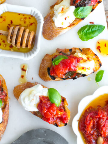 Set out an elegant spread with this Tomato Confit & Burrata Crostini or create the ultimate, intimate dipping snack session with this hearty and happy Baked Brie Apple Crisp.