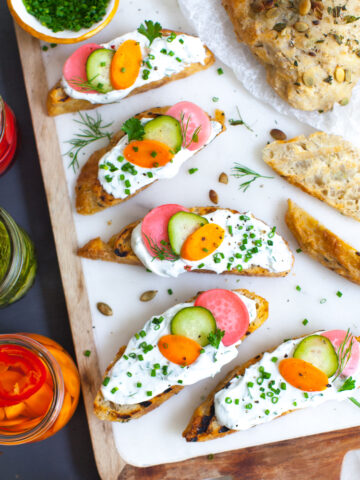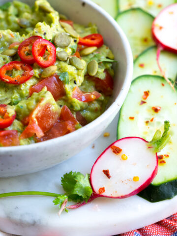 Parties are just excuses for snacks and appetizers, aren’t they? What better way to eat than sampling all of the snackable bites. It’s really the dips that do it for me. Like this flavor forward Roasted Tomato Whipped Feta Dip or my all time favorite Guacamole with Spicy Cucumbers and Radishes, a lighter alternative to chips and guac.
