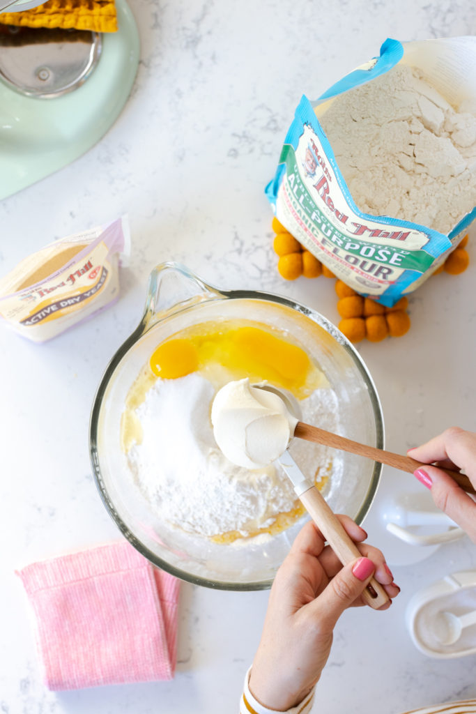 The rolls start out like start standard cinnamon rolls, but take a more seasonal and festive twist with a cranberry sauce filling. The base starts with 2 of my favorite tried and true Bob's products, Bob's Red Mill Organic All Purpose Flour and Bob's Red Mill Active Dry Yeast. Bob's flour is the baseline for 90% of my baked goods and the yeast is what gives these rolls their perfect puff.