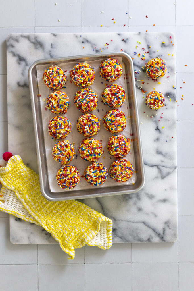 These are so fun, so festive, and absolutely delicious! I made them with my toddler and we had a blast rolling the dough in the sprinkles. The outer crunch from the sprinkles and pillowy lemon cookie is unmatched.