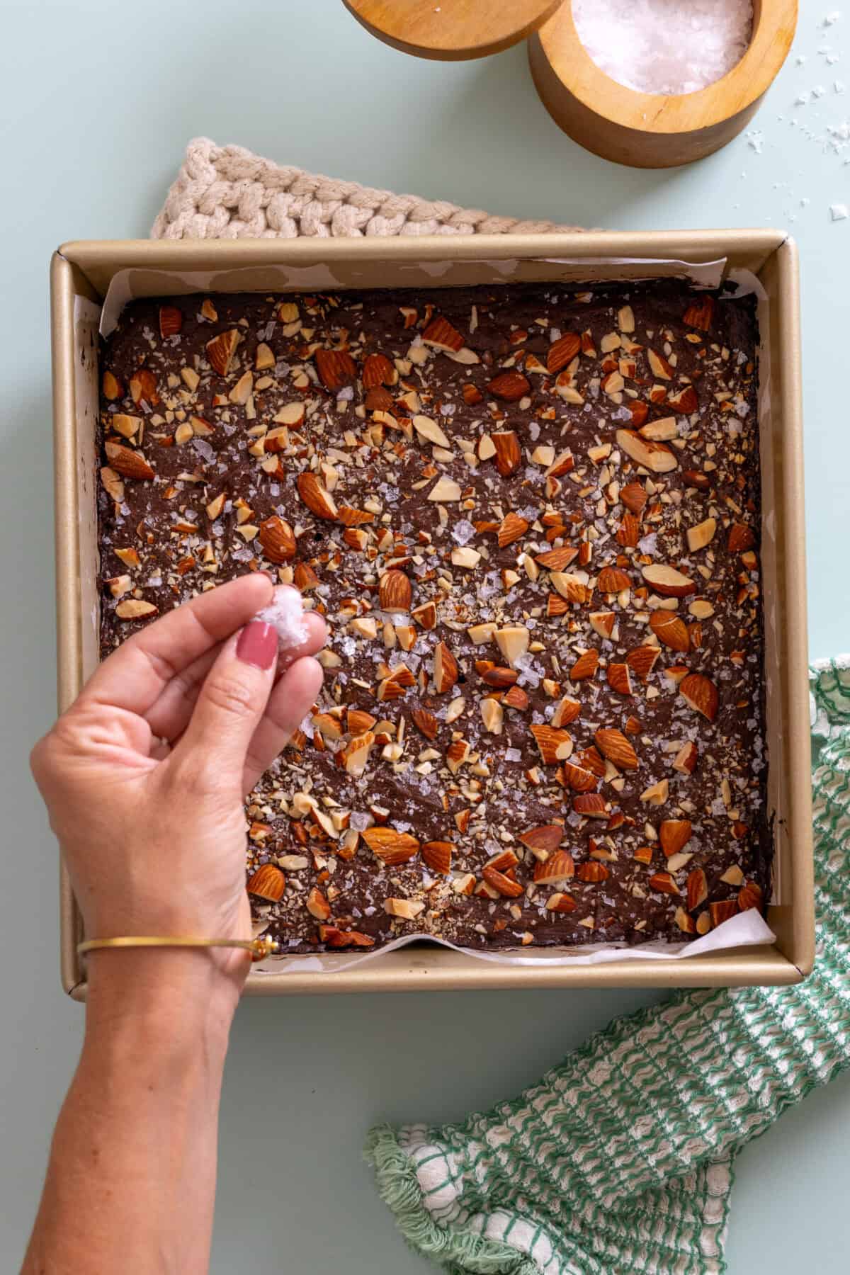 - Sea salt flakes, while optional, boost the mocha, almond and fudge flavors in a contrasting and enhancing nudge. Plus, they add a delicate crunch to the top, giving these brownies an additional textural experience.