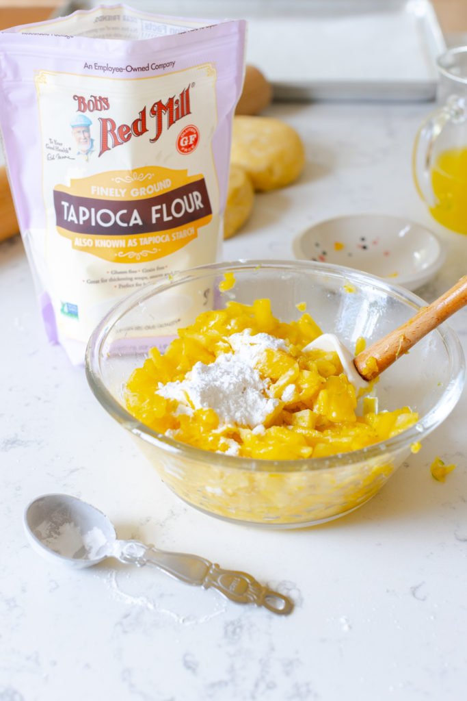 - Add the tapioca flour to the chopped pineapple and toss to combine. Set aside.